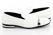 White Glitter Smoking Loafer with Metal Accents