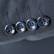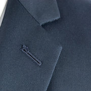 A traditional solid navy-blue exterior and single-button design convey a direct, refined look in this classic two-piece suit of wool blend.
