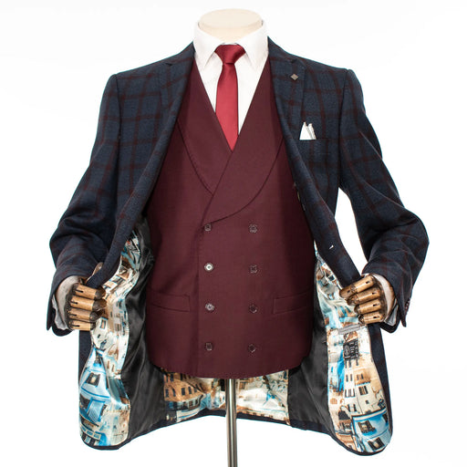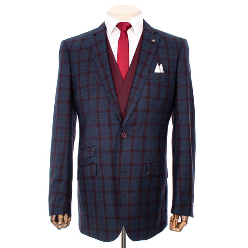 View full detailsNavy and Burgundy Windowpane Check 3-Piece Tailored-Fit Suit