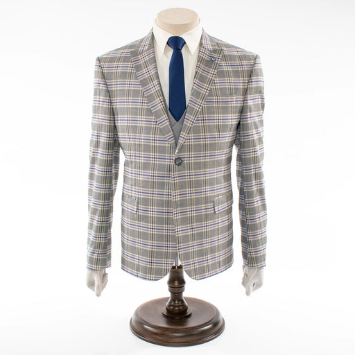View full detailsGray Plaid 3-Piece Slim-Fit Suit