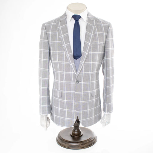 Light Gray And Light Blue Plaid Slim-Fit 3-Piece Suit