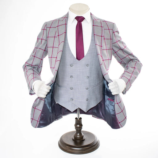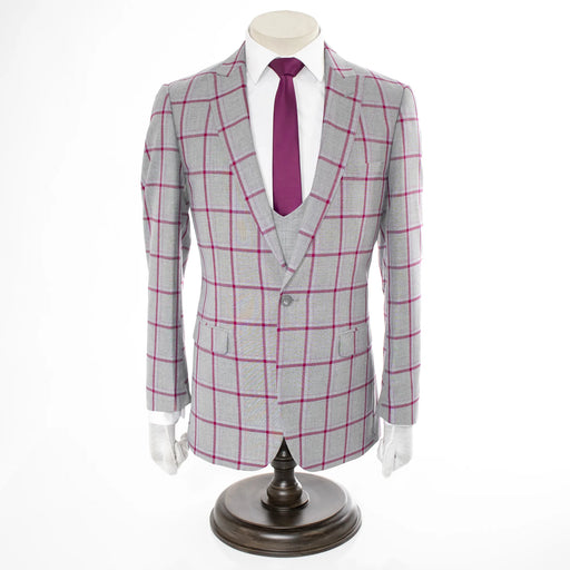 Gray And Fuchsia Plaid 3-Piece Slim-Fit Suit