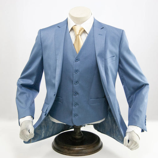 Steel Blue Designer 3-Piece Slim-Fit Wool Suit