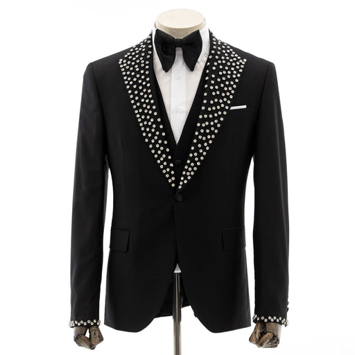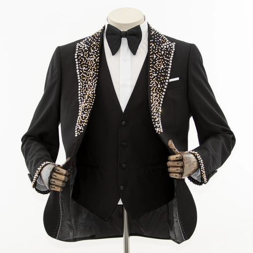 Black 3-Piece Slim-Fit Tuxedo with Gold And Silver Pearls