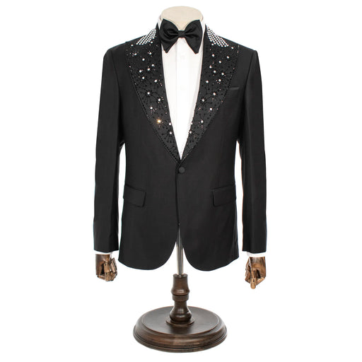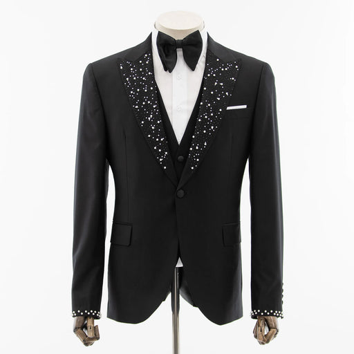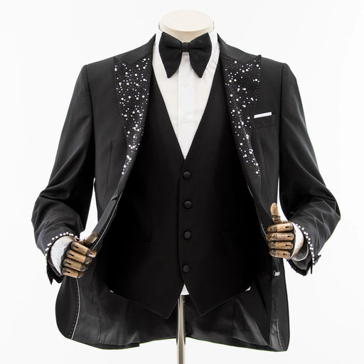 Black 2-Piece Slim-Fit Tuxedo with Rhinestone Peak Lapels