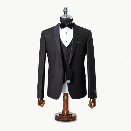Black 3-Piece Tailored-Fit Tuxedo with Shawl Lapel