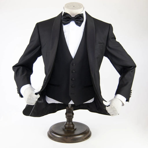 View full detailsBlack 3-Piece Tailored-Fit Tuxedo with Shawl Lapel
