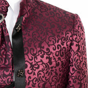 Wine Filigree 3-Piece Slim-Fit Tuxedo with Banded Collar