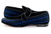 Black and Royal Blue Greek Key Venetian Loafer