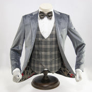 Gray Designer Velvet 3-Piece Slim-Fit Tuxedo with Plaid