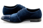 Unique patent leather design combined with plush velvet gives this attractive slip-on dress loafer a presence that is meant to be seen. Pairs great with tuxedo or tuxedo jacket. Will easily add a fashionable spin to your favorite outfits.