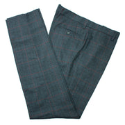 A refined olive green exterior and faded check design compliments this suit's crisp, slim-fit appearance, while its peak lapels and double-breasted design exude a luxurious, formal style.