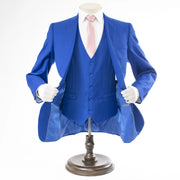 Boasting a bold, royal blue color and vintage notched lapels, this classy suit offers a sharp look whether it’s at the office or at prom.