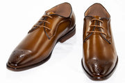 Tan Medallion Toe Leather Lace-Ups