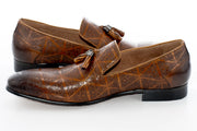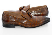 A unique take on the traditional loafer for these patterned tan loafers with decorative tassels that are perfect for business or fashion. Sure to pair wonderfully with a variety of suits, tuxedos or tuxedo jackets.
