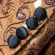This black dinner jacket with its green embroidered paisley pattern is flashy and fashionable. Don't just show up to your next formal Event, New Years, be the center of attention.