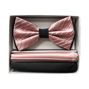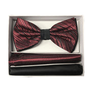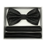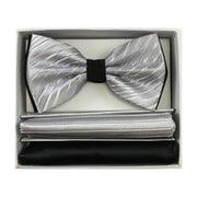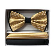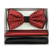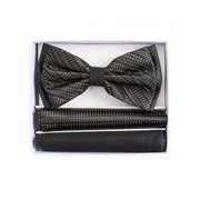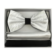 Mix and match this extravagant two-tone bow tie with interchangeable matching handkerchiefs to your tuxedo or suit to create the perfect look for whatever event you're planning to attend.