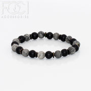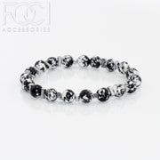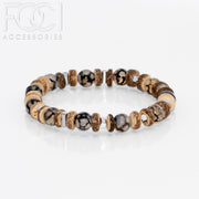 Bring an earthy accent to your favorite suit or dress shirt with this uniquely styled bracelet of faux-marble and chrome plated metal that can be easily slipped on or off.