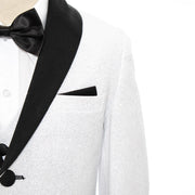 White Glitter 3-Piece Kids' Tuxedo with Matching Waistcoat