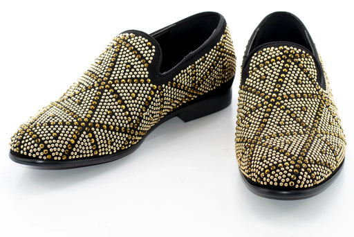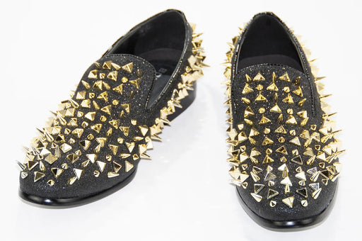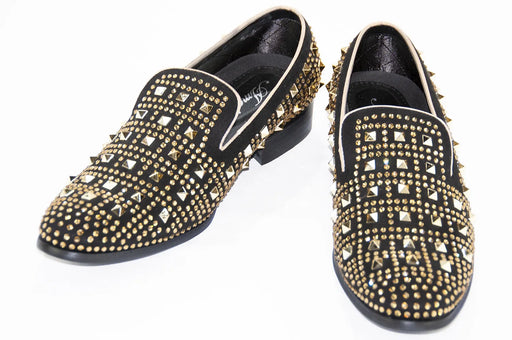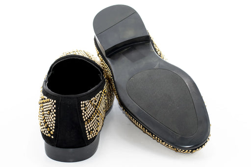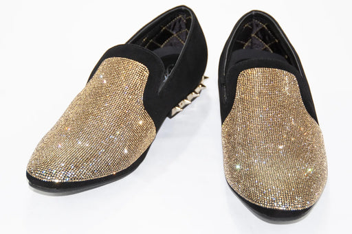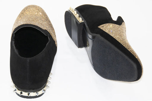 View full detailsBlack with Gold Spiked Rhinestones Smoking Loafer