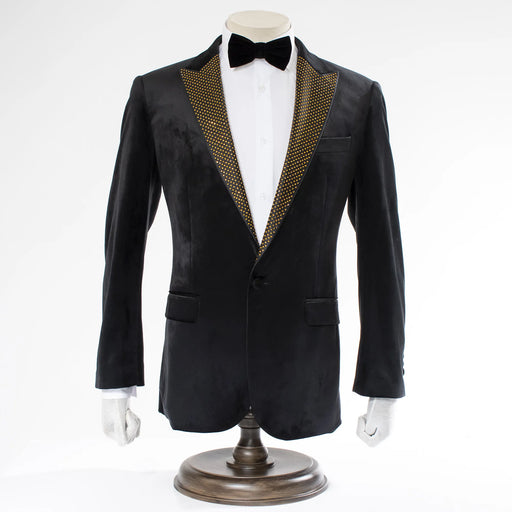 View full detailsBlack Velvet Dinner Jacket with Gold Rhinestone Lapels