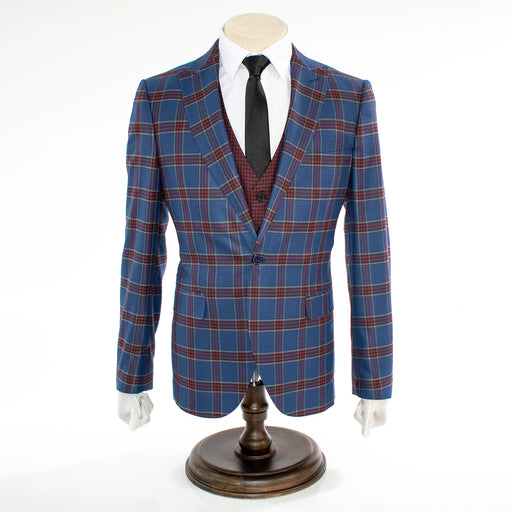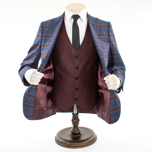 Blue and Burgundy Plaid 3-Piece Tailored-Fit Suit