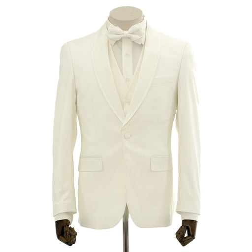 Cream Trim on Cream Stretch 3-Piece Slim-Fit Tuxedo