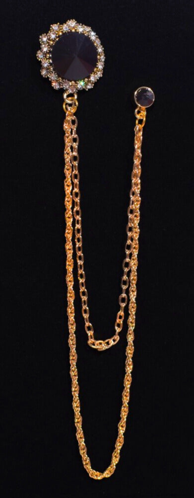 View full detailsLong Chain Round Stone Jeweled Brooch Lapel Pin