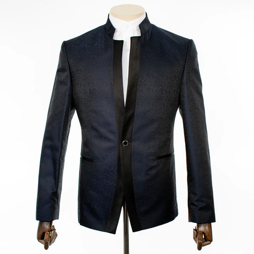 View full detailsNavy Patterned 2-Piece Slim-Fit Tuxedo with Mandarin Collar