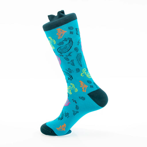 Darkly colored paisley adds cool depth to this snug fitting designer sock featuring moisture wicking fabric and a touch of stretch for comfort.