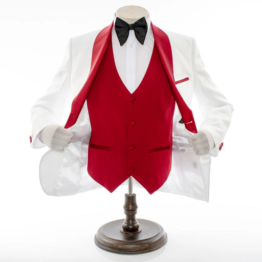 Gianni | White with Burgundy Velvet Lapel 3-Piece Tailored-Fit Tuxedo