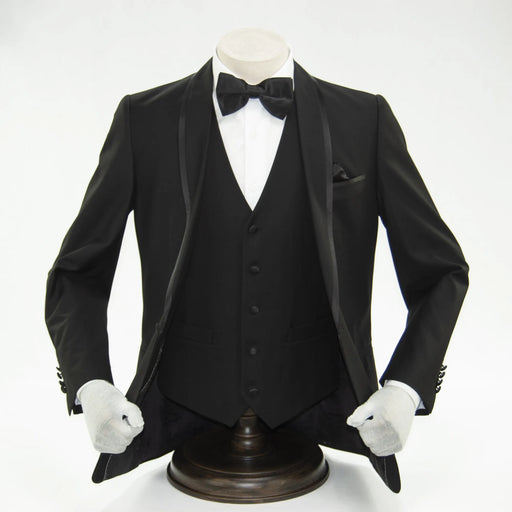 Black 3-Piece Tailored-Fit Tuxedo with Shawl Lapel