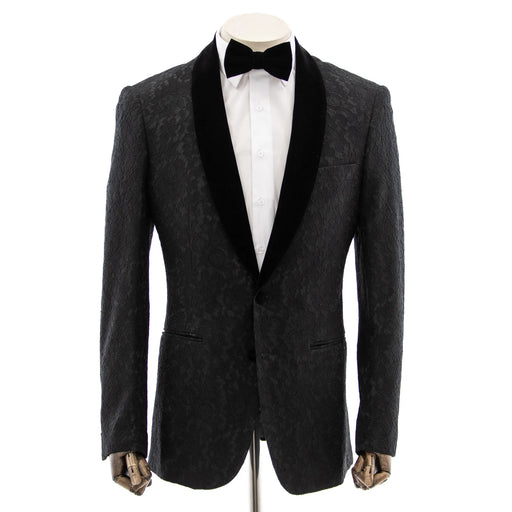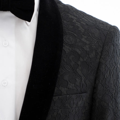 View full detailsBlack Embroidered Floral 2-Piece Suit With Shawl Lapels