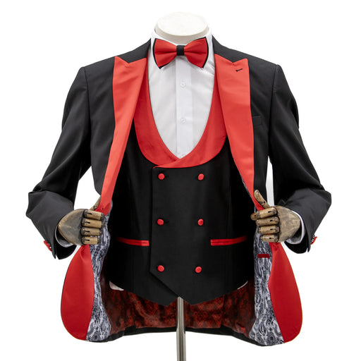 Black and Red 3-Piece Slim-Fit Tuxedo