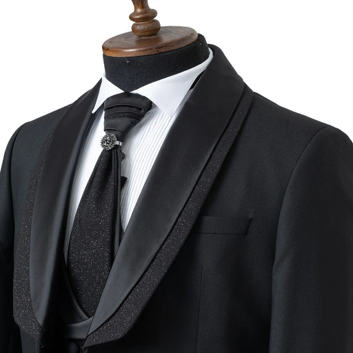 Duncan | Black 3-Piece Slim-Fit Tuxedo with Removable Shawl