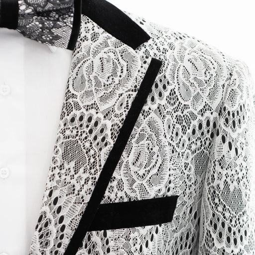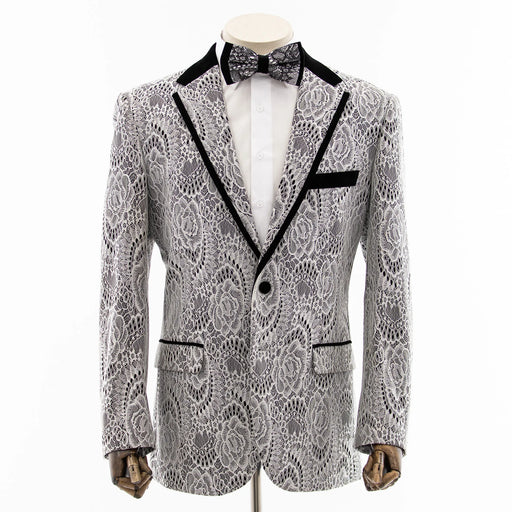 This fashionable dinner jacket with elegant woven floral designs is as eye-catching as it is stylish. Be the center of attention at any formal even...