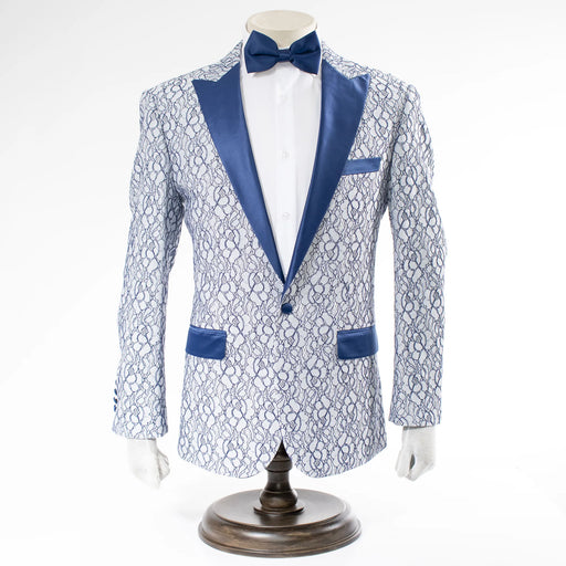 This dinner jacket with its blue embroidered paisley pattern is flashy and fashionable. Don't just be the center of attention at any formal event y...