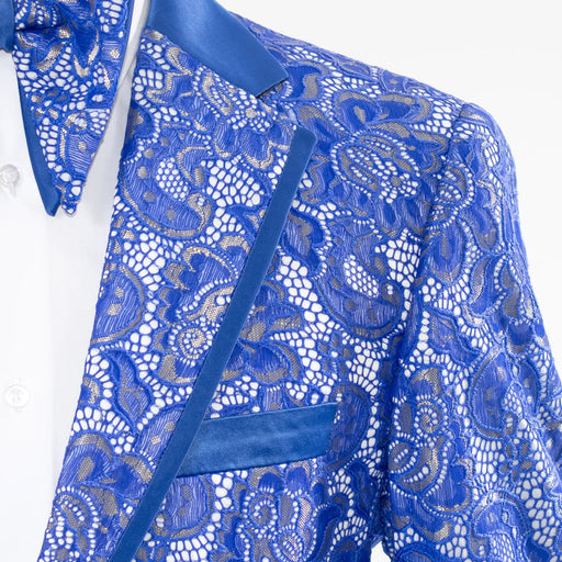 View full detailsRoyal Blue Floral Dinner Jacket With Shawl Lapels