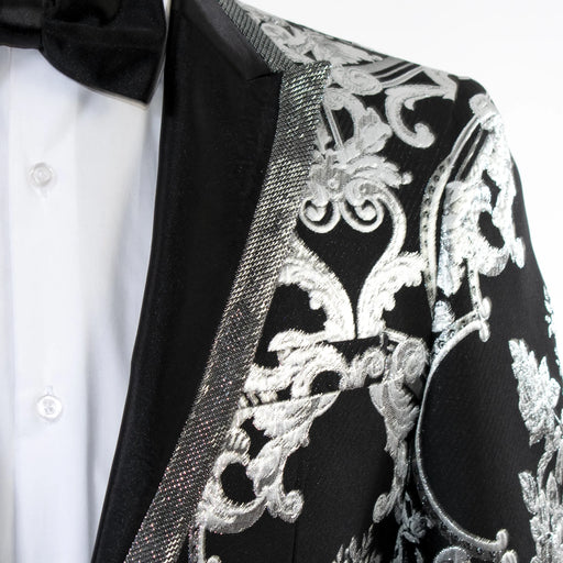 This fashionable black dinner jacket with gold 3D baroque embroidered design is as stylish as it is fashionable. Be the center of attention at any ...