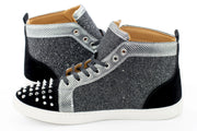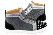 These spiked-toe high-tops with glitter and faux metallic silver leather dance in the light as you dance away the night.  Pair with a suit for a prom or wedding, or with a pair of jeans and a jacket for a more casual look.