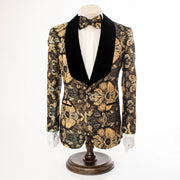 Black Detailed Floral Regular-Fit Jacket With Shawl Lapels