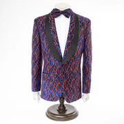 Blue and Red Leaf Patterned Dinner Jacket