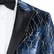 Elegant lines of gold flow gracefully down this attractive dinner jacket with a debonair slim fit and showy peak lapels to make an eye-catching option for prom or homecoming.