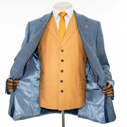 Maintain a stylish, office-savvy look with this vintage, regular-fit suit with showy peak lapels and a double-breasted vest for a sophisticated air...