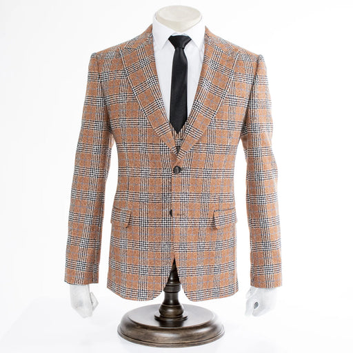 Orange Plaid 3-Piece Tailored-Fit Wool Suit