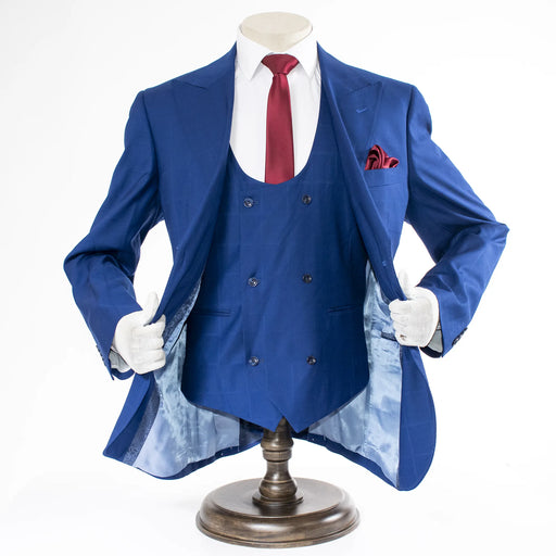 Cobalt Blue Plaid 3-Piece Slim-Fit Suit
