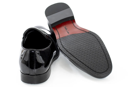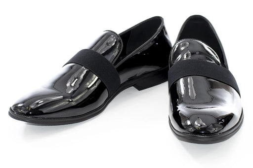 Add the final touch of refine to your wedding tuxedo or office suit with these glossy, patent-leather slip on loafers, featuring a classic black de...