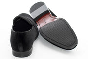 This timeless, elegant smoking loafer with satin ribbon is one of our bestsellers. Perfect for weddings, or proms; The silhouette, color, material, and style are sure to pair wonderfully with a variety of tuxedos and tuxedo jackets.