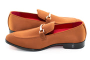 Cognac Satin Apron-Toe Bit Loafer