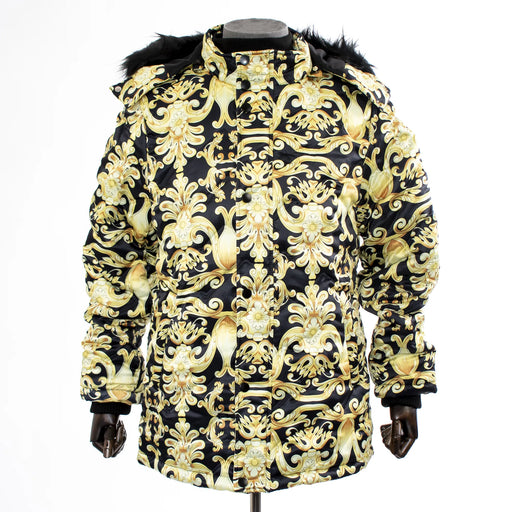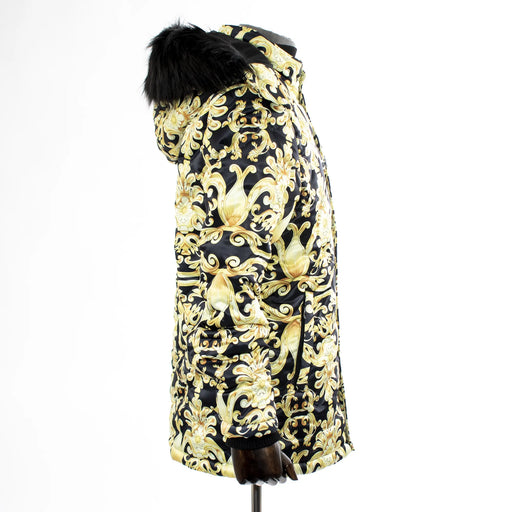 Keep eyes on you as you don this opulent designer jacket with a stylish floral exterior and posh faux-fur hood. An eye-catching option that augment...
